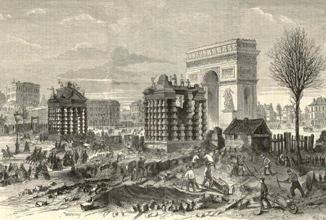 Ces taxes ne touchaient pas les boissons et marchandises en transit (arrêté du 29 nivôse an VII). Il a été détruit en 1860 par le baron Haussmann lors de l'extension de Paris jusqu'à l'enceinte de Thiers construite de 1841 à 1844. Les passages ménagés dans l'enceinte s'appelaient des barrières, la plupart des barrières étaient munies de bâtiments (ou bureaux d'octroi), ils ont été conçus par l'architecte Claude Nicolas Ledoux. Les octrois étaient au nombre de 61. La longueur du mur était de 24 kilomètres, il correspond à la seconde ceinture de boulevards soit les voies suivantes: Rive gauche, d'est en ouest: Boulevard Vincent-Auriol, boulevard Auguste-Blanqui, boulevard Saint-Jacques, boulevard Raspail, boulevard Edgar-Quinet, Boulevard de Vaugirard, boulevard Pasteur, boulevard Garibaldi, boulevard de Grenelle. Rive droite, d'ouest en est: rue de l'Alboni, rue Benjamin-Franklin, avenue d'Iéna, avenue Kléber, rue La Pérouse, rue de Presbourg, rue de Tilsitt, avenue de Wagram, boulevard de Courcelles, boulevard des Batignolles, boulevard de Clichy, boulevard de Rochechouart, boulevard de la Chapelle, boulevard de la Villette, boulevard de Belleville, boulevard de Ménilmontant, boulevard de Charonne, boulevard de Picpus, boulevard de Reuilly, boulevard de Bercy. Le mur traverse les quartiers suivants Place d'Italie, Denfert-Rochereau, Montparnasse, Trocadéro, Étoile, Batignolles, Pigalle, Belleville, Nation. Lors de l'agrandissement de Paris de 1860 par le préfet Haussmann, le mur fut abattu et seuls quatre propylées furent conservés, qui subsistent depuis lors : La barrière de Chartes avec la Rotonde du parc Monceau situé en bordure du parc Monceau La barrière Saint-Martin avec la Rotonde de la Villette construit place de la Bataille-de-Stalingrad. La Barrière du Trône, soit 2 petits bâtiments situés avenue du Trône près de la place de la Nation. La Barrière d'Enfer, soit 2 pavillons situés place Denfert-Rochereau. Il subsiste également deux Pavillons intégré dans le Ministère des Finances quai de Bercy qui faisaient partie de la Barrière d’eau. Le nombre d'arrondissements est passé de 11 à 20, et l'absorption de 24 communes suburbaines limitrophes, comme suit : 4 communes absorbées en totalité : La Villette, Belleville, Vaugirard et Grenelle. 20 communes absorbées partiellement : 7 communes supprimées, leur territoire étant partagé entre Paris et les communes voisines : Auteuil, Passy, Batignolles-Monceau, Montmartre, La Chapelle, Charonne, Bercy. 13 communes amputées du seul territoire absorbé par Paris : Neuilly, Clichy, Saint-Ouen, Aubervilliers, Pantin, Le Pré-Saint-Gervais, Bagnolet, Saint-Mandé, Ivry, Gentilly, Montrouge, Vanves, Issy.