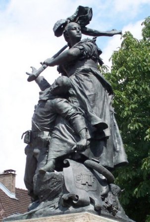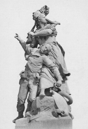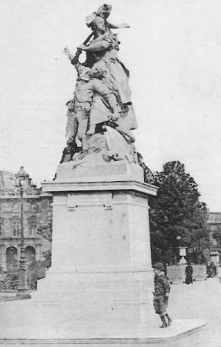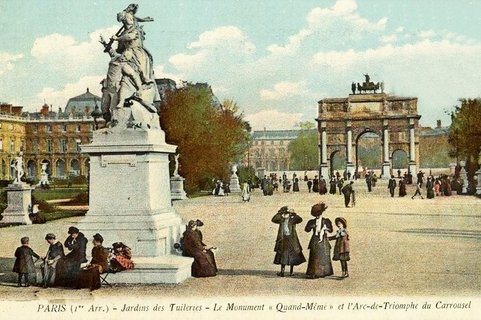 Le groupe en marbre Quand même réalisé par le sculpteur Antonin Mercié en 1882 en protestation contre l'annexion de l'Alsace-Lorraine et placé en 1894 devant l'Arc du Carrousel a été retiré en 1933. Il a été replacé place Bergson (8e art.), puis enlevé à la fin des années 1960, puis installé en 1981 dans le jardin du fort du Mont Valérien avant d'être attribué en 1986 au musée d'Orsay. Un exemplaire du groupe en bronze se trouve à Belfort (90) .