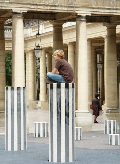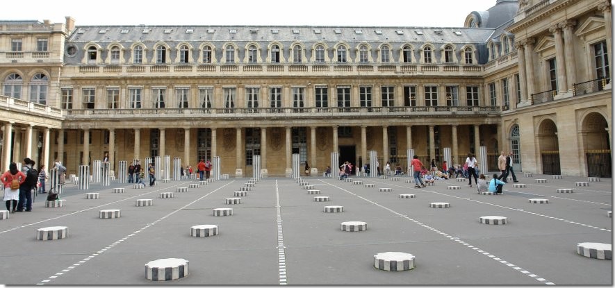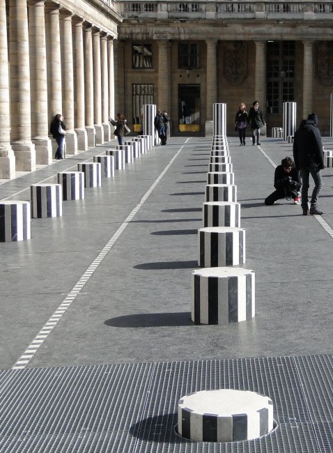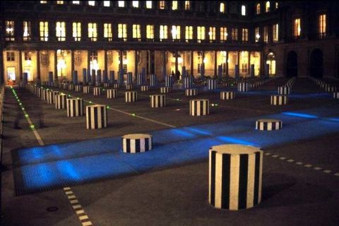 En 1986 sous la présidence de François Mitterrand, le ministère de la Culture confie à Daniel Buren né en 1938, la réalisation d’une sculpture de 3000 m² dans la cour d’honneur du Palais Royal : « Les colonnes de Buren ». Tout comme la Tour Eiffel en 1889, le Centre Georges Pompidou en 1977, l’intégration d’une oeuvre contemporaine au patrimoine historique va provoquer une levée de boucliers.