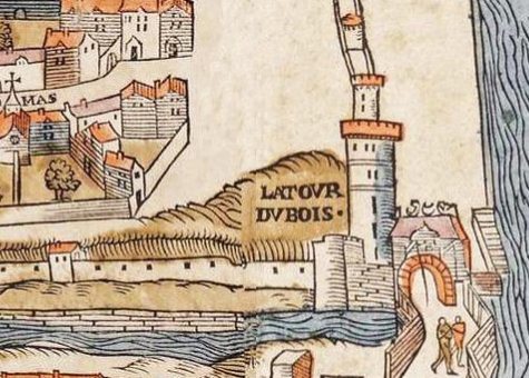 La tour du bois est une des principales tours de l'enceinte de Charles V construite au XIVe siècle sur la rive droite au niveau de l'actuel pont du Carrousel. Un rempart a été construit le long de la Seine jusqu'a la tour du coin. Cette tour a été démolie vers 1670.