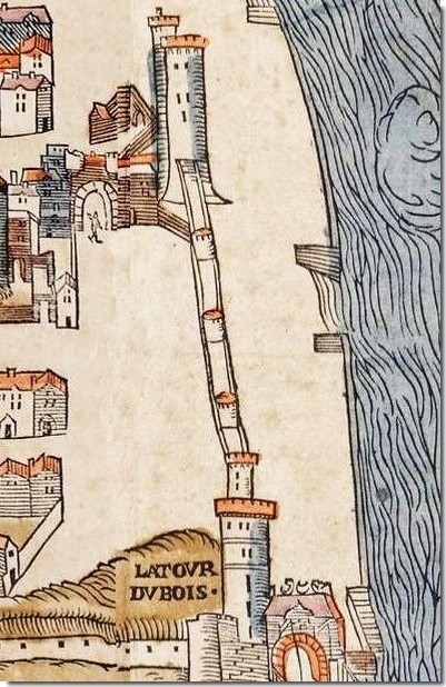 La tour du Coin et la tour du Bois qui étaient situées sur la Rive droite de Paris servaient a protéger la ville contre des attaques venant de la Normandie par la Seine. La nuit, des chaînes posées sur des bateaux installés au milieu du fleuve reliaient les deux tours et empêchaient des incursions à partir du fleuve