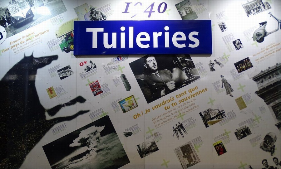 Les quais de la station Louvre-Rivoli a été réaménagé en 2000 pour le centenaire du métro avec comme thème le Patrimoine j'ai la mémoire qui chante. La fresque réveille notre mémoire, pour un voyage poétique et visuel où l’humour se mêle à la nostalgie.