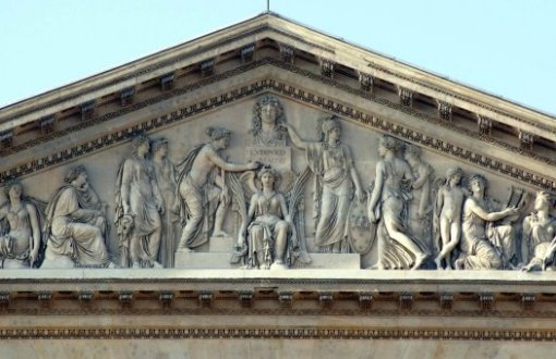 La façade monumentale de la colonnade du Louvre, qui est la façade ouest de la Cour Carrée, est dominée par un péristyle à colonnes doubles, occupant tout l'étage. Louis XIV confia sa réalisation a l'architecte Claude Perrault (1613-1688) . Le fronton et le tympan central, sculptés sous Napoléon Ier, sont l'œuvre de François-Frédéric Lemot (1771-1827) et Pierre Cartellier. Les fossés, prévus à l'origine ont été creusés en 1964 sur l'ordre du ministre de la culture de l'époque André Malraux