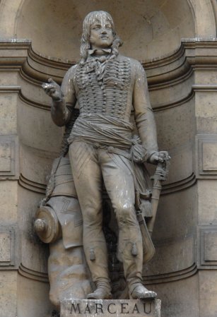 Les statues en pied des généraux de maréchaux de l'empire ont été placées sur la façade nord du Louvre entre les guichets et le pavillon Marsan le long de la rue de Rivoli. Commandés pour les premiers pas Napoléon III, elle furent installées dans des niches entre 1916 et 1928.