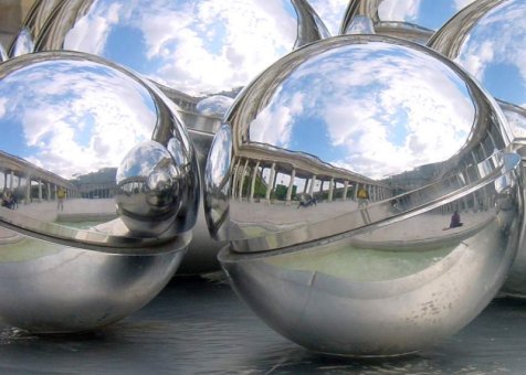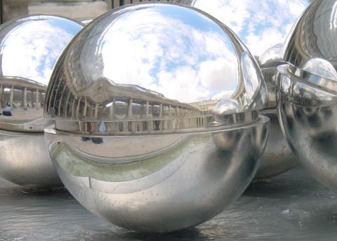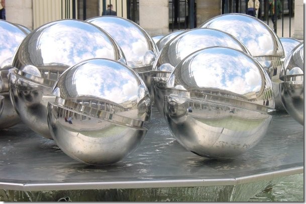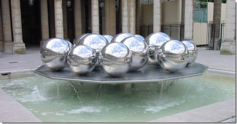 Les deux fontaines horizontales à boules métalliques, lentement mobiles, de Pol Bury furent placées en 1985 sur le parvis de la cour d'Orléans, entre le Conseil constitutionnel et le ministère de la Culture à Paris, à peu près en même temps les colonnes de Daniel Buren.