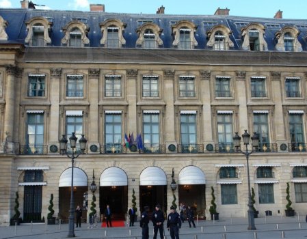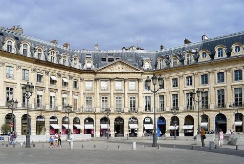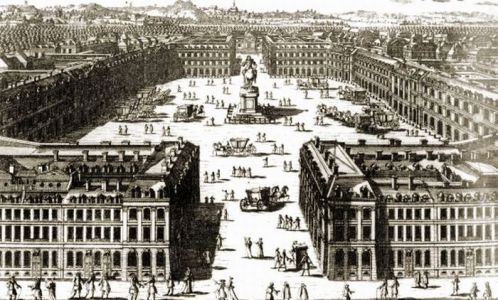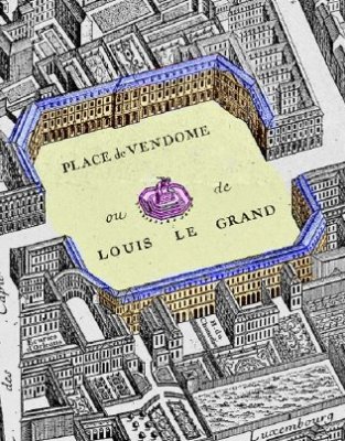 La place Vendôme de forme octogonale symétrique a été conçue en 1699 par l’architecte Jules Hardouin Mansart (1646-1708) l'architecte de Versailles, elle était destinée à recevoir la statue équestre monumentale du roi Louis XIV par François Girardon (1628-1715) au sommet d’une colonne en son centre. Il fit édifier toutes les façades des Hôtels particuliers entourant la place sur un même modèle.