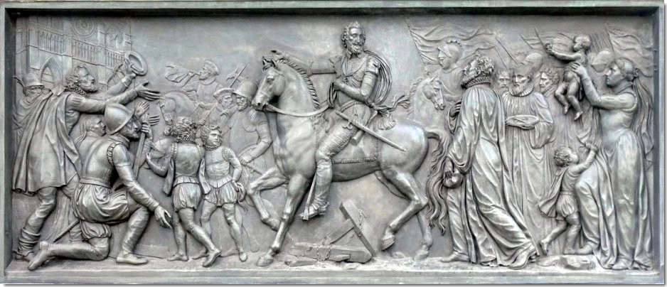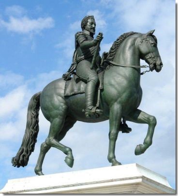 La statue actuelle qui date de 1818 a été voulue par le roi Louis XVIII pour glorifier la lignée des Bourbons. Elle est l'œuvre du sculpteur François-Frédéric Lemot (1771-1827).