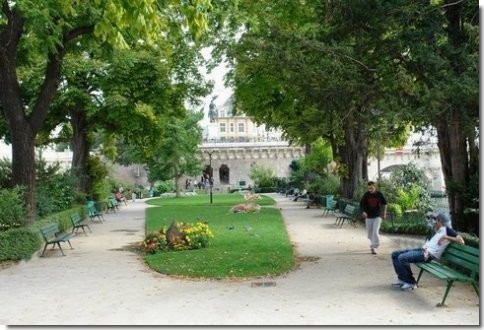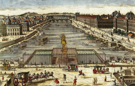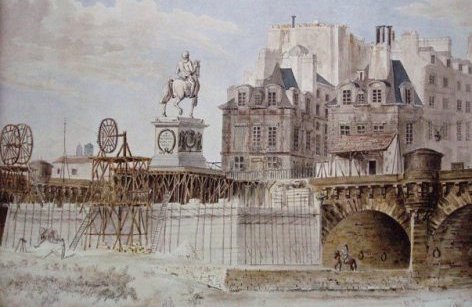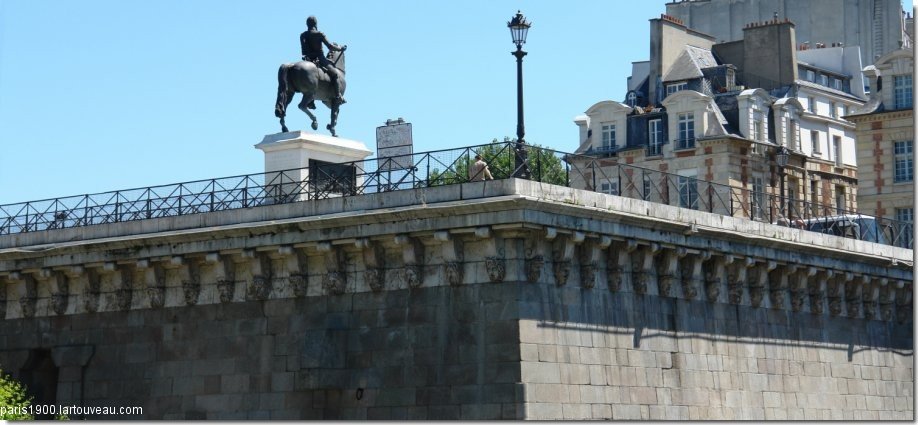 La place à la pointe ouest de l'ïle de la Cité se trouve entre la place Dauphine et le square du Vert Galant et le pont Neuf qui la traverse. La construction de la première statue équestre de Henri IV fut décidée en 1604 et terminée en 1613, trois ans après la mort du roi, elle était l’œuvre d'un élève de Michel Ange, Jean Bologne (1529-1608). Le piédestal de marbre a été fait construire par Louis XIII.