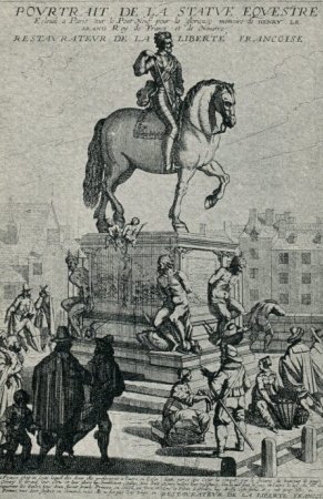 Détruite sous la Révolution en 1792, la statue actuelle date de 1818 est l'œuvre du sculpteur François-Frédéric Lemot (1771-1827) qui s'inspira des quelques éléments originaux retrouvés. Les statues des captifs de Franqueville et Bordoni qui se trouvaient à la bases de l'ancienne statue ont été sauvegardées au musée du Louvre. Deux bas-reliefs décorent le piédestal : Henri IV faisant entrer des vivres dans Paris et L'Entrée d'Henri IV dans Paris.