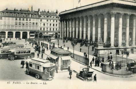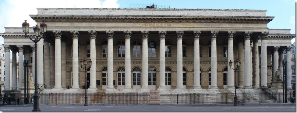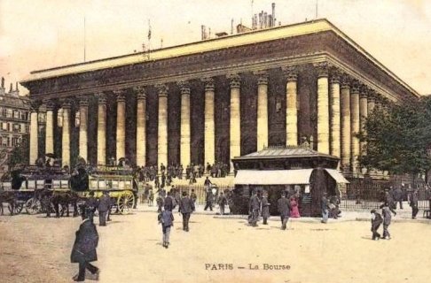 Depuis la création officielle de la Bourse et l'institution du statut des agents de change en 1724, l’activité avait lieu dans différents lieux de Paris comme l'église Notre-Dame des Victoires, le Palais Royal etc.. En raison de son essor Napoléon 1er décida en 1808 la construction d’un édifice propre à cette activité, suite à un concours l’architecte Alexandre Théodore Brongniart fut désigné, (auteur du lycée Condorcet et est l’auteur des plans du cimetière du Père-Lachaise à Paris)