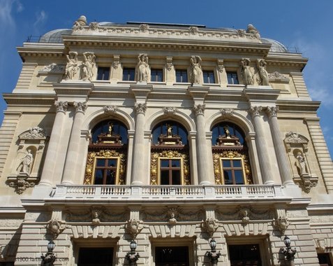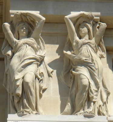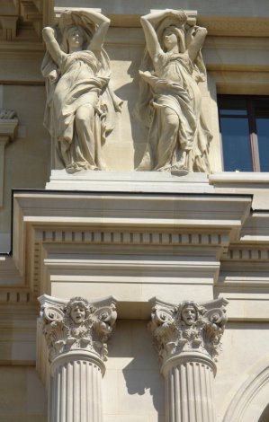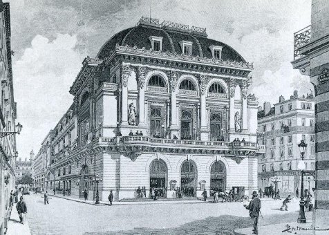 Les cariatides ont été sculptées par André Allar, Gustave Michel et Emile Peynot. Deux statues ornent les niches sur la façade: la Musique de Denys Puech (1854-1942) et la Poésie d'Ernest Guilbert (1848-1913) Victime d’un incendie déclaré en 1838 la salle fut reconstruite en 1840, et accueillit à nouveau la troupe de l'Opéra-Comique. Un nouvel incendie se déclara en 1887. En 1893 le théâtre richement décoré fût reconstruit par l'architecte Louis Bernier. Au 19e siècle, l'Opéra-Comique un certains nombre d'opéras y furent crées comme la Damnation de Faust, d'Hector Berlioz, de Carmen de Georges Bizet, de Lakmé de Léo Delibes, et de Manon de Massenet.