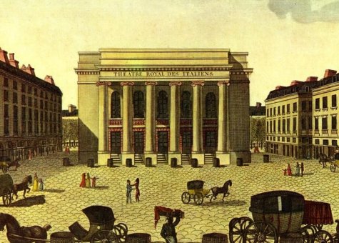 Le théâtre de l'Opéra-Comique, dont l'entré est située place Boïeldieu, fut initialement élevé en 1783, dos au boulevard des Italiens, pour la troupe royale dont il tient le nom. La troupe quitta la salle en 1801 en raison notamment de l’exiguïté de la salle.
