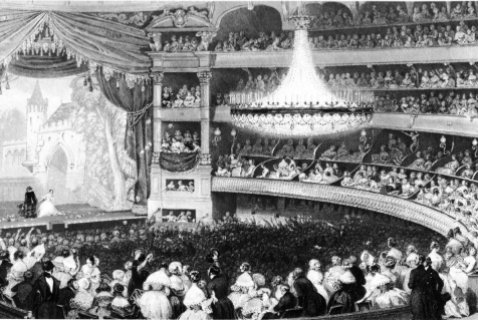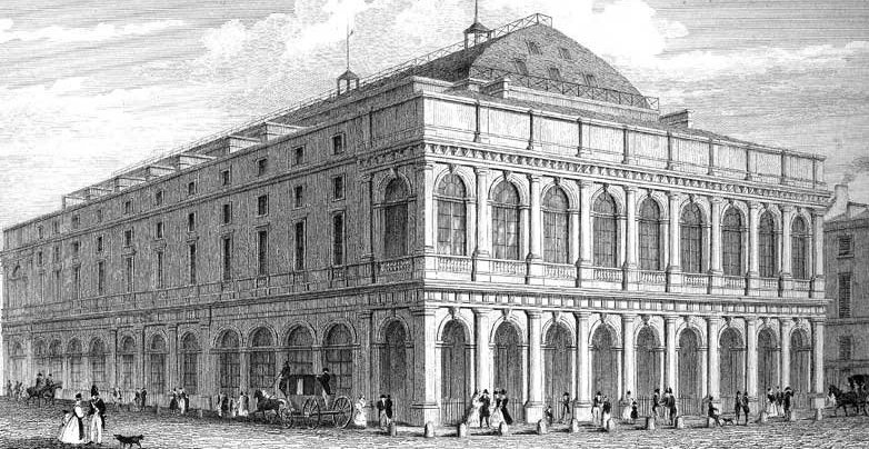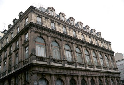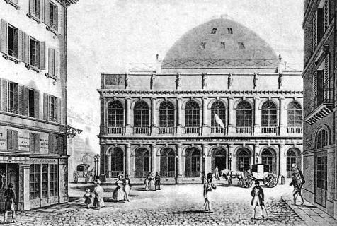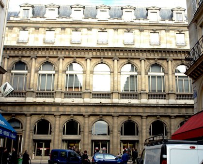 La salle Ventadour ancienne salle de l’Opéra comique inaugurée en 1829 est l'Œuvre des architectes Jean-Jacques Huvé et Louis de Gerchy. Suite à l'incendie de la Favard en 1838 la troupe des italiens s’installe dans la salle en octobre 1841 ; elle prend le nom de Théâtre-Italien. En 1878, la Banque d’Escompte achète le bâtiment et le transforme en bureaux. En 1882, la banque de France en fait l’acquisition et le destine à une salle de sport et une cantine pour ses employés. De style néo-classique, la façade, inspirée de Palladio, est rythmée par des arcades encadrées de colonnes doriques ou ioniques.