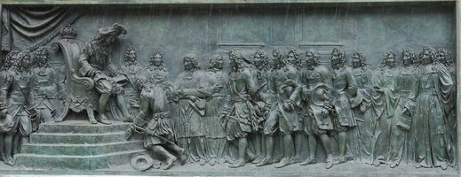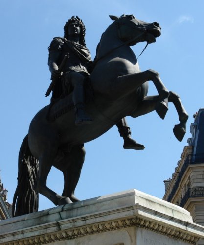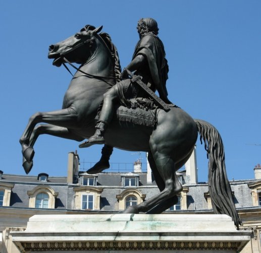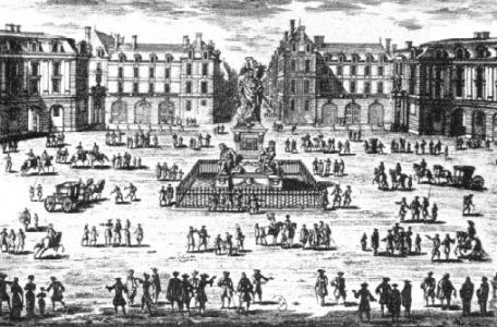 La place des Victoires provient de la volonté du duc de Feuillade, marquis de la Feuillade et maréchal de France d'honorer Louis XIV . Il commanda au sculpteur Martin Desjardins (1637-1694) une statue en pied de Louis XIV, pour l'offrir au roi afin de célébrer la paix de Nimègue, conclue en 1678 et fait construire autour par Jules Hardouin-Mansart (1646-1708) le premier modèle de place circulaire dans l'histoire de l'urbanisme classique