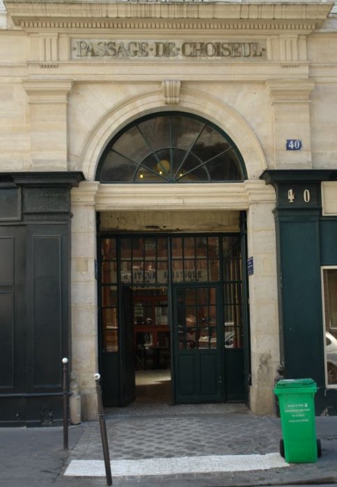 Le passage de Choiseul d'une longueur de 190 m relie le 40, rue des Petits-Champs au sud au 23, rue Saint-Augustin au nord. Le passage a été édifié entre 1825 et 1827 successivement par les architectes François Mazois et Antoine Tavernier à l’initiative des banquiers Mallet qui possédaient à cet emplacement quatre hôtels.