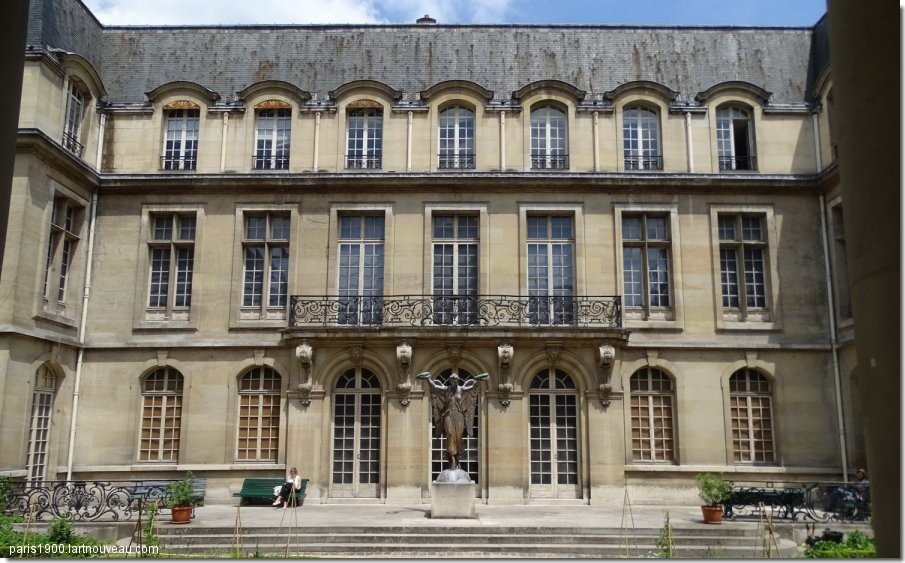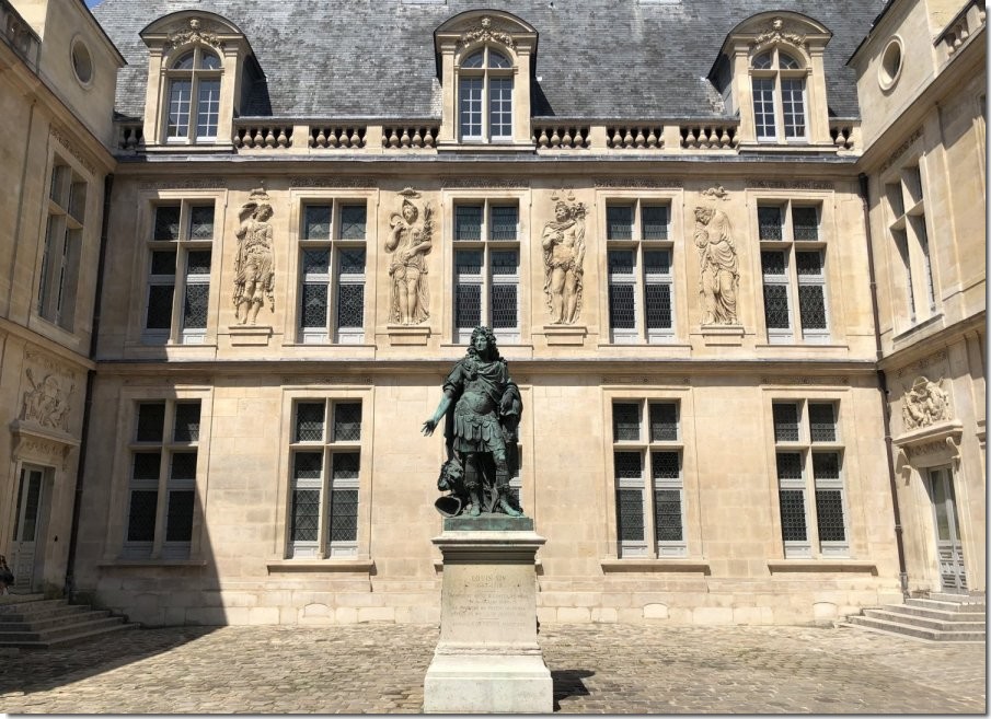 La façade de l'hôtel, conserve son magnifique portail et le corps de logis principal pourvu de fenêtres à meneaux et orné de bas-reliefs sculptés par Jean Goujon (1510-1567) et ses élèves. L'artiste sculptera également la très belle allégorie de l'Abondance du portail donnant sur la rue de Sévigné. La statue de Louis XIV par Antoine Coysevox (1640-1720) au centre de la cour est l’unique exemplaire à avoir échappé à la destruction durant la Révolution. La statue dite de la Victoire (il s'agit en fait de l'immortalité) due à Louis Simon Boizot (1843-1809) provient de la fontaine du Châtelet au centre de la place du Châtelet une copie l'ayant remplacé. La cour Henri IV doit le haut-relief équestre en bronze du roi adossée au mur sud, réalisée par Philippe Lemaire (1798-1800) en 1834 pour le tympan de la porte centrale de l'Hôtel de Ville incendié durant la commune en 1871.