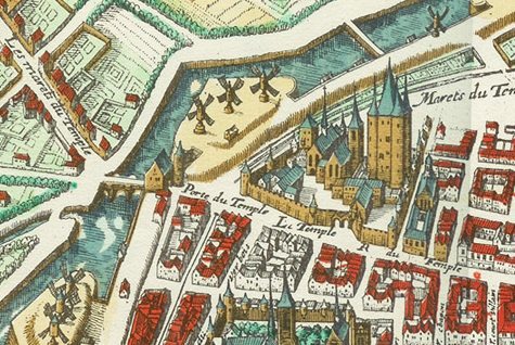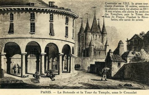 L'enclos du Temple, aujourd’hui détruit, qui était entouré de hautes murailles crénelées symbolisait la puissance de l’ordre des Templiers. D'une superficie de 6,5 hectares et construit à partir de 1170, il se trouvait à l'extérieur de l'enceinte de Philippe Auguste. A l’intérieur de l’enclos, le Temple abritait notamment une église, des hôtels particuliers, la Rotonde. Deux donjons le protégeait la tour de César et la tour du Temple. En 1792 le roi Louis XVI, la reine Marie-Antoinette, le Dauphin furent emprisonnés dans le donjon du Temple. Les bâtiments de l'enclos ont été tous détruits après la Révolution entre 1796 et 1863 date de destruction de la Rotonde.