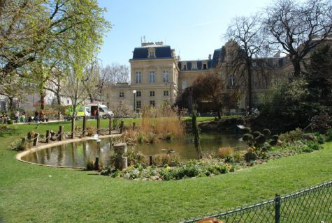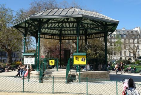 Le square du temple d'une superficie de 7 965 m2 est situé rue du Temple, face à la mairie de l'arrondissement, non loin du carreau du Temple . Dessiné par l'architecte Jean Charles Alphand en 1857, ce square est caractéristique du Second Empire par les éléments qui le composent : une pièce d'eau artificielle tombant des rochers venant de Fontainebleau, une grille dessinée par Gabriel Davioud, un kiosque à musique et un chalet de nécessité.