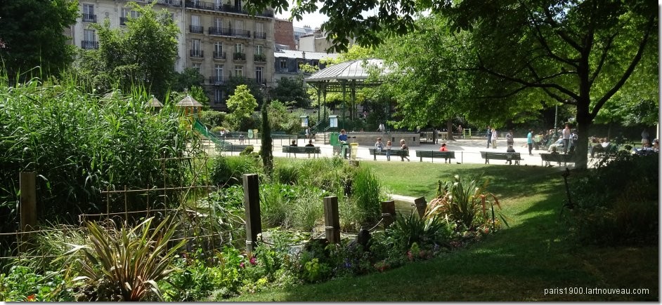 Le square abrite deux statues. Un buste sur socle, où est inscrit « à B. Wilhelm fondateur 1781-1842 L'Orphéon français », au-dessus d'un portrait en médaillon et du texte « À Eugène Delaporte propagateur 1818-1886 ». Une statue en pierre du poète et chansonnier Pierre-Jean de Béranger sculptée par Henri Lagriffoul en 1953 l'ancienne statue en bronze réalisée par le sculpteur Amédée Doublemard (1826-1900) en 1855 ayant été fondue durant l'occupation en 1942. Entouré de grilles ouvragées, les allées du square du Temple serpentent "à l'anglaise" autour d'arbres, d'un kiosque à musique et d'une cascade artificielle. Le square occupe une partie de l'ancien enclos des Templiers qui fut transformé en prison d'Etat de 1792 à 1808. C'est là que Louis XVI et sa famille vécurent leur captivité sous la Révolution. En 1809, Napoléon ordonna la destruction d'une grande partie de la forteresse et la tour du Temple fut abattue en 1811. Cette "ville dans la ville" a été modifiée au 17ème siècle pour accueillir un palais puis la prison du Temple où Louis XVII finit ses jours.
