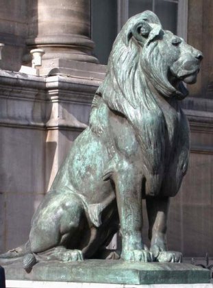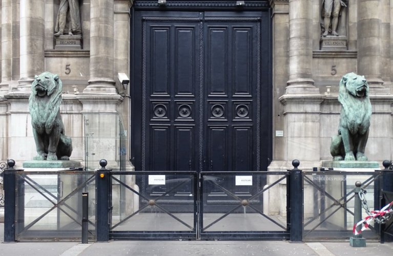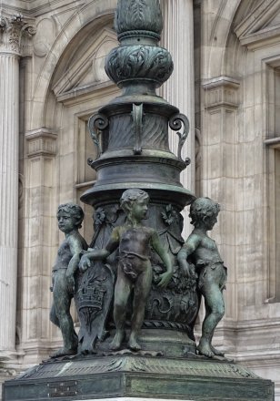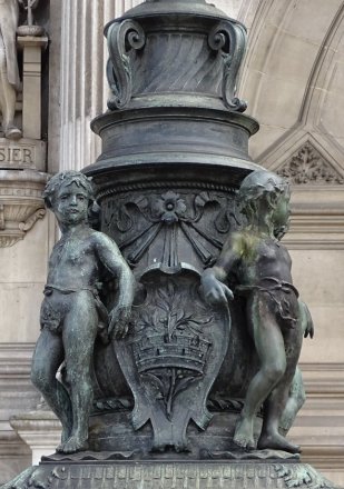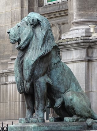 La façade arrière sur la rue Lobau comporte deux portails encadrés par des lions assis, en bronze, réalisés par Alfred Jacquemart (porte de gauche) et Auguste Cain (porte de droite).