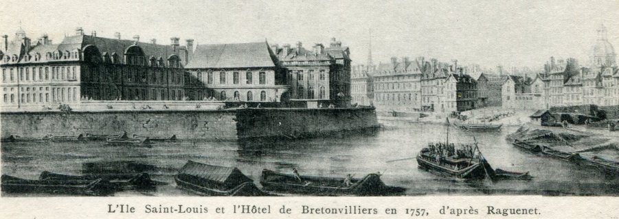 L’Hôtel de Bretonvilliers qui était situé à la pointe Est de l'île Saint Louis a été détruit en 1874. Il avait été réalisé pour Claude Le Ragois de Bretonvilliers, secrétaire au Conseil du Roi Louis XIII, d'après les plans de l'architecte Jean Androuet du Cerceau (1585 - 1649). Sa construction a été réalisée entre 1637 à 1642 par l'architecte Pierre Le Muet.