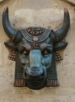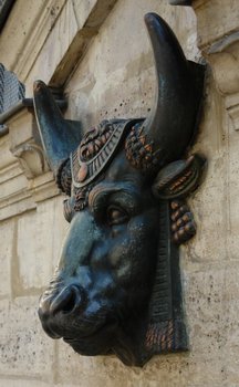 Les deux têtes de boeufs réalisées par Edmée Gaulle se trouvent rue des Hospitalières Saint-Gervais, en face des l'espace des Blancs-Manteaux-Pierre-Charles-Krieg