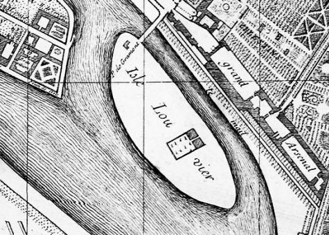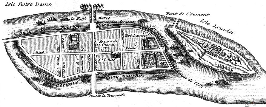 L'île Louviers, qui a été rattaché à la berge au milieu du XIXe siècle suite au comblement du bras de Grammont, se trouvait en amont de l'île Saint-Louis. Elle tient son nom de son propriétaire Nicolas de Louviers prévôt des marchands au début du XVe siècle. Le boulevard Morland correspond à l’ancien quai Morland. Un pont a été construit le pont Grammont afin de la relier à la rive droite. La passerelle de l’Estacade a été construite en 1818 pour la relier à l'île Saint Louis a été détruite au cour du XXe siècle.