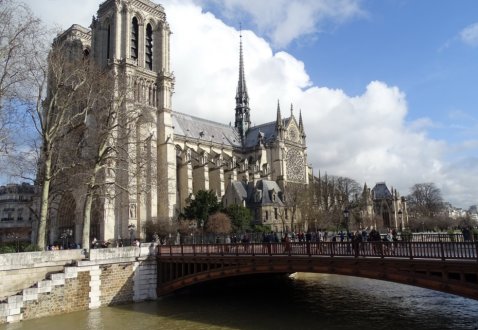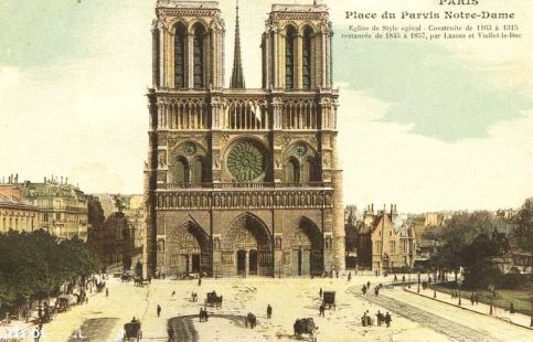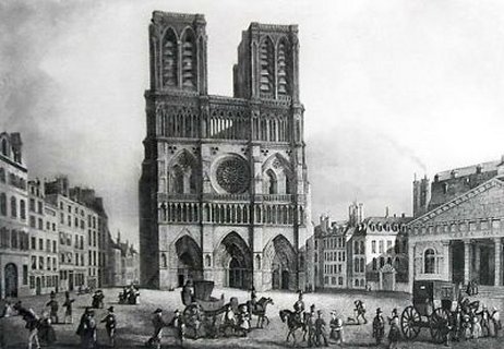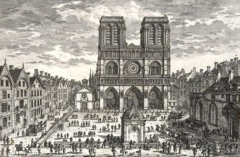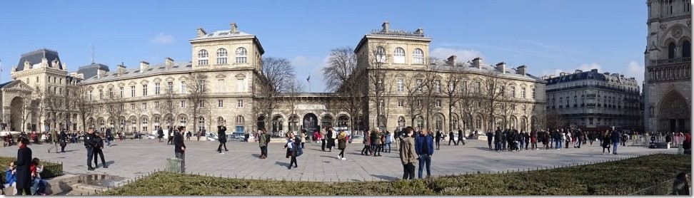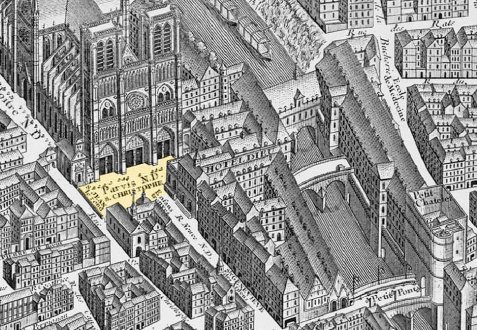 Le parvis de la cathédrale Notre Dame de Paris est bordé au nord par l'hôpital Dieu, au sud par la Seine et à l'ouest par la Préfecture de Police. A la suite des travaux du baron Haussmann dans les années 1860-1870 fut créé un parvis devant la cathédrale Notre Dame de Pari. Après la construction de la crypte archéologique, ouverte en 1980, le tracé de l'urbanisme pré haussmannien fut indiqué au sol par des lignes de pierres blanches.