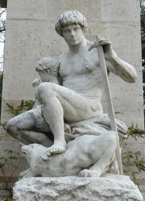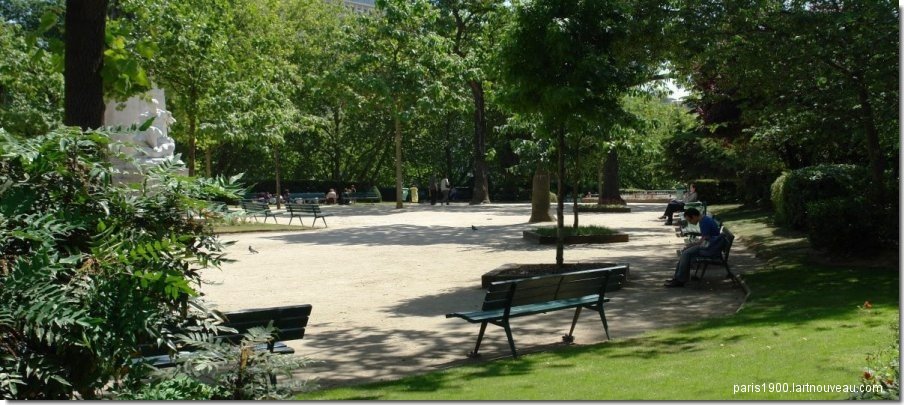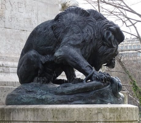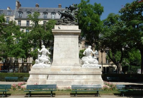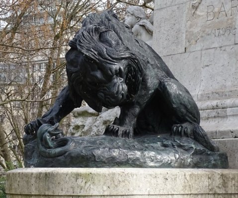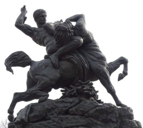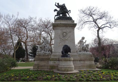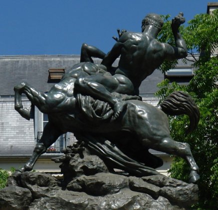 L'histoire tirée de la mythologie antique grecque du combat entre les Centaures et les Lapithes est un thème intemporel. Outre les bronze le piédestal de l'architecte Louis Bernier comporte deux sculptures en pierre L'Ordre et La Force réalisées par le sculpteur Laurent Honoré Marqueste (1850-1920). Il s'agit de copies de groupes en pierre de Antoine-Louis Barye se trouvant au pavillon Denon du Palais du Louvre. Les bronzes ont été fondus durant la seconde guerre mondiale suite à une décision du gouvernement de Vichy en 1941. Grâce au mécénat de la fondation de la fondation taïwanaise CHI MEI , deux nouveaux bronzes ont été recrées. Le premier, « Thésée terrassant le centaure Biénor » réalisé par Marièle Gissinger d'après un exemplaire à échelle réduite possédé par la fondation, elle a été réinstallée en 2011. Le second « Le lion au serpent » a été replacé en juin 2014. En contrebas, le long de l'eau, une promenade sur la berge est plantée avec à son extrémité un saule pleureur. Un Cèdre du Liban (Cedrus Libanii) a été planté par Mr Rafik Ariri et le président Jacques Chirac pour rappeler l'amitié de la France avec le peuple Libanais.