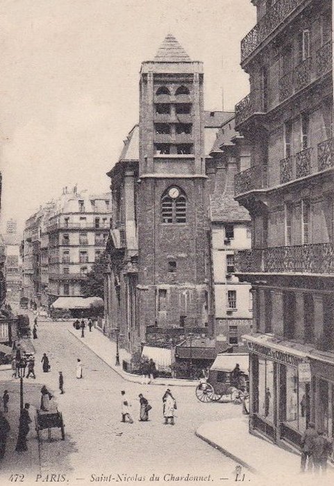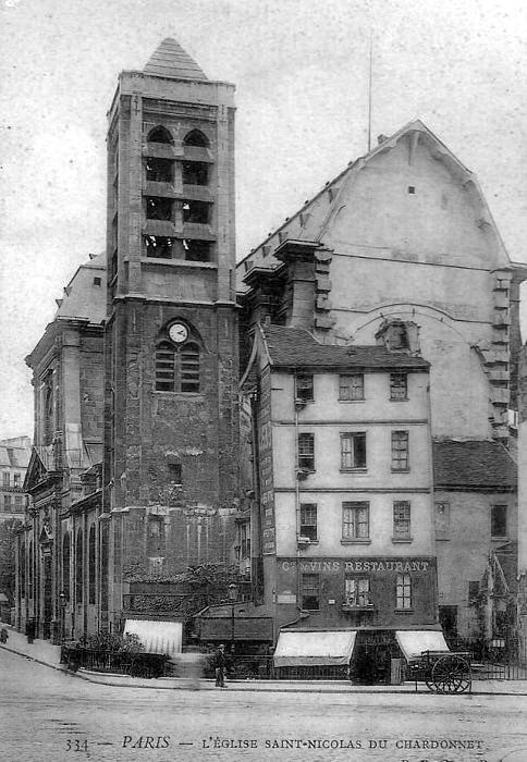 L'église Saint Nicolas du Chardonnet située 23 rue des Bernardins à côte de la Maison de la Mutualité, la première chapelle a été construite au XIIIe siècle. Le clocher a été reconstruit en 1625, l'église actuelle a été rebâtie entre 1656 et 1763, notamment par Jacques Lemercier (1585-1654). Elle comporte une tour carrée latérale. En raison de la construction du boulevard Saint Germain sous Haussmann l'entrée a été déplacée. La façade actuelle date de 1934 après démolition de maisons