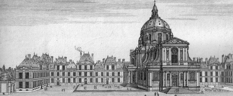 Le collège de Sorbon, fondé en 1257-1258, était alors l'un des nombreux collèges hébergeant des étudiants pauvres, sur les flancs de la Montagne Sainte-Geneviève. Il fut reconstruit de 1625 à 1629 par l'architecte Jacques Lemercier (1585-1654) au frais du Cardinal de Richelieu dont le tombeau est à l'intérieur. Fermée par la Révolution en 1791, atelier d'artistes en 1801, la Sorbonne fut à nouveau affectée à l'enseignement en 1821.