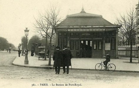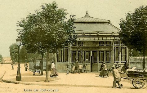 La gare de Port-Royal a été construite en 1895 par la Compagnie du Paris-Orléans lors du prolongement de la ligne de Sceaux de la gare de Denfert-Rochereau à celle de Luxembourg. Elle est disposée à cheval sur les voies, en raison du manque de place. Le bâtiment a conservé son aspect originel avec ses quais protégés par des marquises vitrées. La gare est desservi par RER B depuis les années 1970 suite au prolongement de la ligne vers Châtelet - Les Halles.