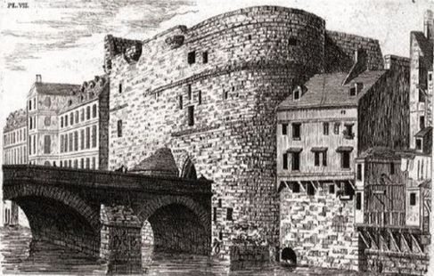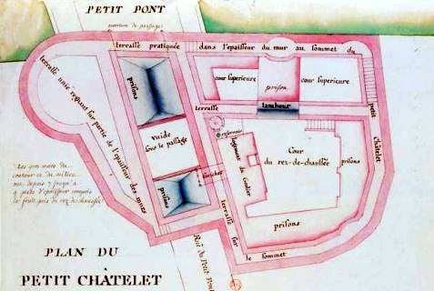 Le Petit Châtelet a été construit à la demande du roi Charles II le Chauve sur la rive gauche, à l'extrémitéSud du Petit-Pont, à l’entrée de la rue Saint-Jacques, l’antique voie romaine vers le sud. Les tours de bois furent remplacées par des constructions en pierre vers 1130 par le roi Louis VI