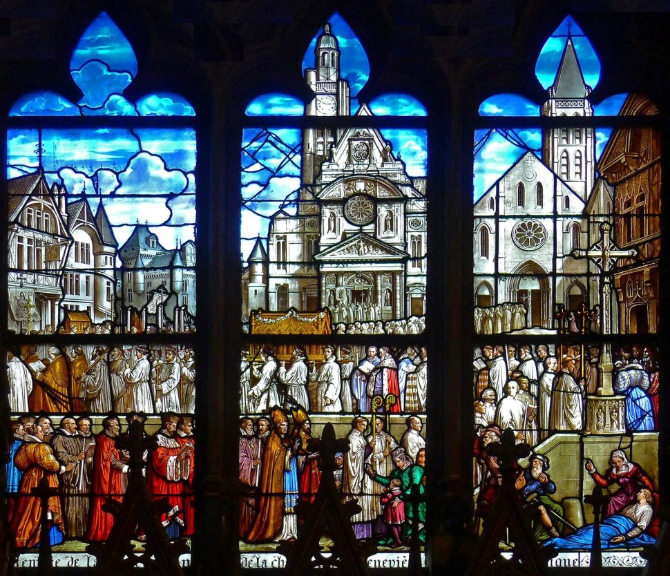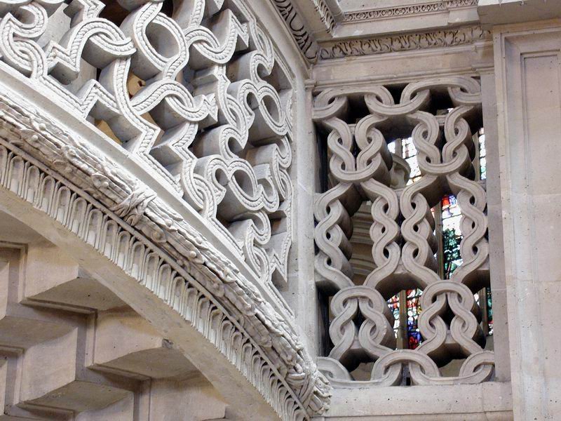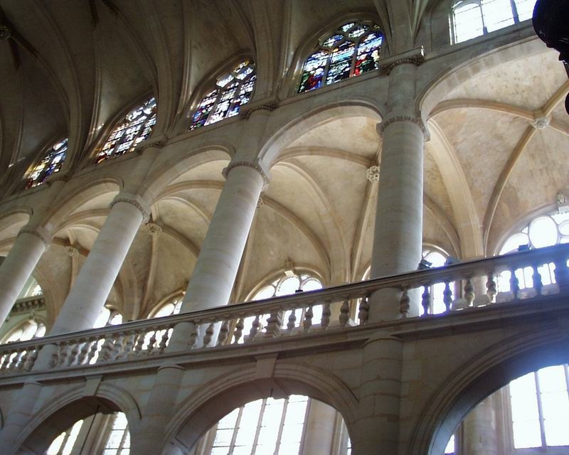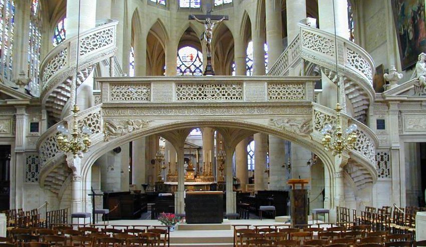 La construction de l'église St Etienne-du-Mont démarre en 1492 mais elle n’a été consacrée qu’en 1626. La châsse qui renferme la pierre tombale de la Sainte Patronne de Paris Sainte Geneviève , y a été installée en 1803. Avec ses styles très mélangés elle diffère totalement des autres églises et elle détient le dernier jubé existant encore à Paris : véritable dentelle de pierre dont la galerie centrale (1535) est flanquée de deux remarquables escaliers à vis. La chaire et son orgue de tribune sont de 14e siècle.