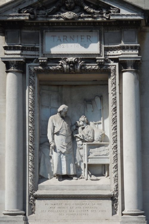 L'avenue de l'Observatoire commence devant son entrée sud du jardin du Luxembourg traverse le boulevard Montparnasse au carrefour Port Royal et se termine à l'Observatoire de Paris . L'avenue a été construite suivant la ligne du méridien de Paris celui passe également à l'Observatoire de Paris A l'angle de l'avenue de l'Observatoire et de la rue d'Assas se trouve un haut-relief à la gloire de Stéphane Tarnier (1828-1897) médecin obstétricien. Cette œuvre inaugurée en 1905 et réalisée par le sculpteur Denys Puech (1854-1942) est installée sur le bâtiment de l'hôpital Tarnier dépendance de l'hôpital Cochin.