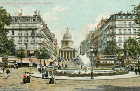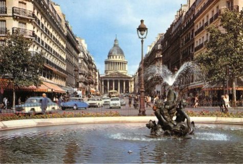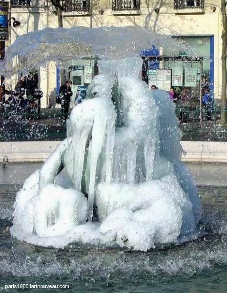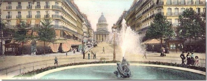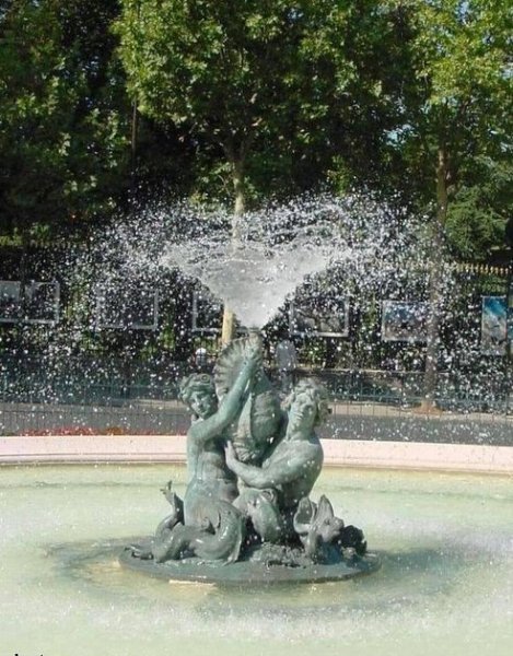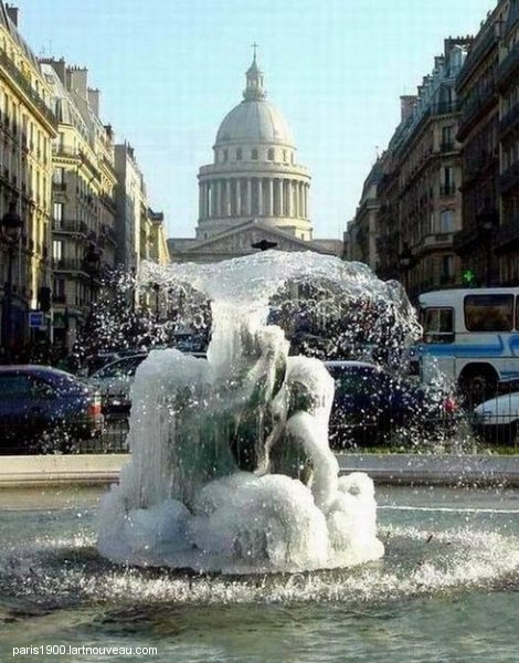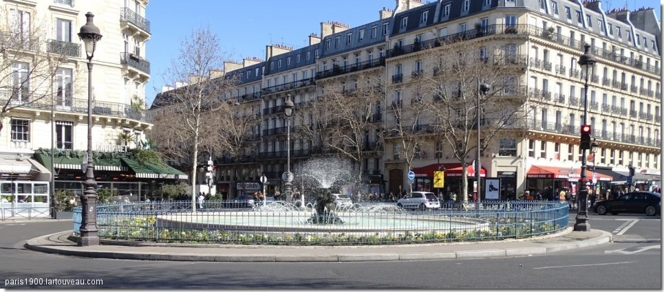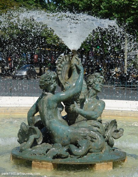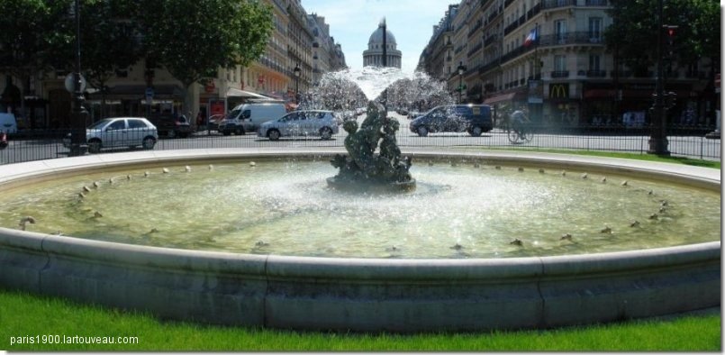 En 1884 le bassin est complété par une statue en bronze de Gustave Crauck (1827 -1905) représentant une nymphe et un triton, la fontaine se trouve dans le prolongement de la rue Soufflot qui conduit au Panthéon