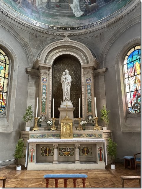 L'église Notre dame des Champs, construite de 1867 à 1876 par Léon Ginain, est située au 91 boulevard du Montparnasse encadrée par les rues Notre dame des Champs et Stanislas. Elle a remplacé une petite chapelle de bois de la rue de Rennes dite Notre-dame des Planches. L'église est bordé sur un côté par le square Ozanam , en face se trouve la restaurant de la Coupole