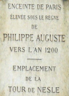 La bibliothèque de Mazarine, qui a été léguée par Mazarin au collège des Quatre-Nations, se trouve à l'emplacement de la tour de Nesles qui faisait partie de l'enceinte de Philipe Auguste , construite au XIIIe siècle,