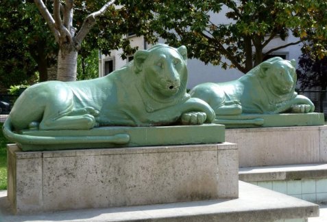 Sur le quais Malaquais, la statue de Voltaire de 1885 réalisée par le sculpteur Joseph-Michel Caillé (1836-1881) a été fondue en 1941, le socle détruit en 1955. Une nouvelle statue de Voltaire en pierre a été réalisée par le sculpteur Léon Drivier qui a été placée dans le square Honoré Champion situé derrière l’Institut. A son emplacement a été placée en 1980, une statue de la République réalisée par Jean-François Soitoux (1824-1891) est la première représentation officielle de la République Française commandée en 1848. Une fontaine réalisée par l'architecte Antoine Vaudoyer a été édifiée en 1811 sur la place de l'institut. Elle a été démantelée en 1865, les lionnes, en fonte de fer, ont été placés en décoration devant les bâtiments. En 1950 les quatre sculptures ont été installées à Boulogne-Billancourt.