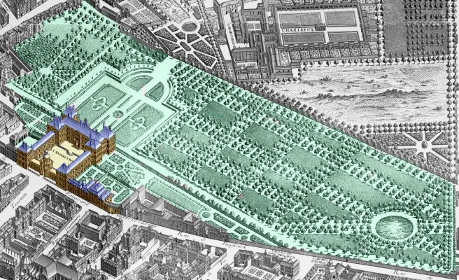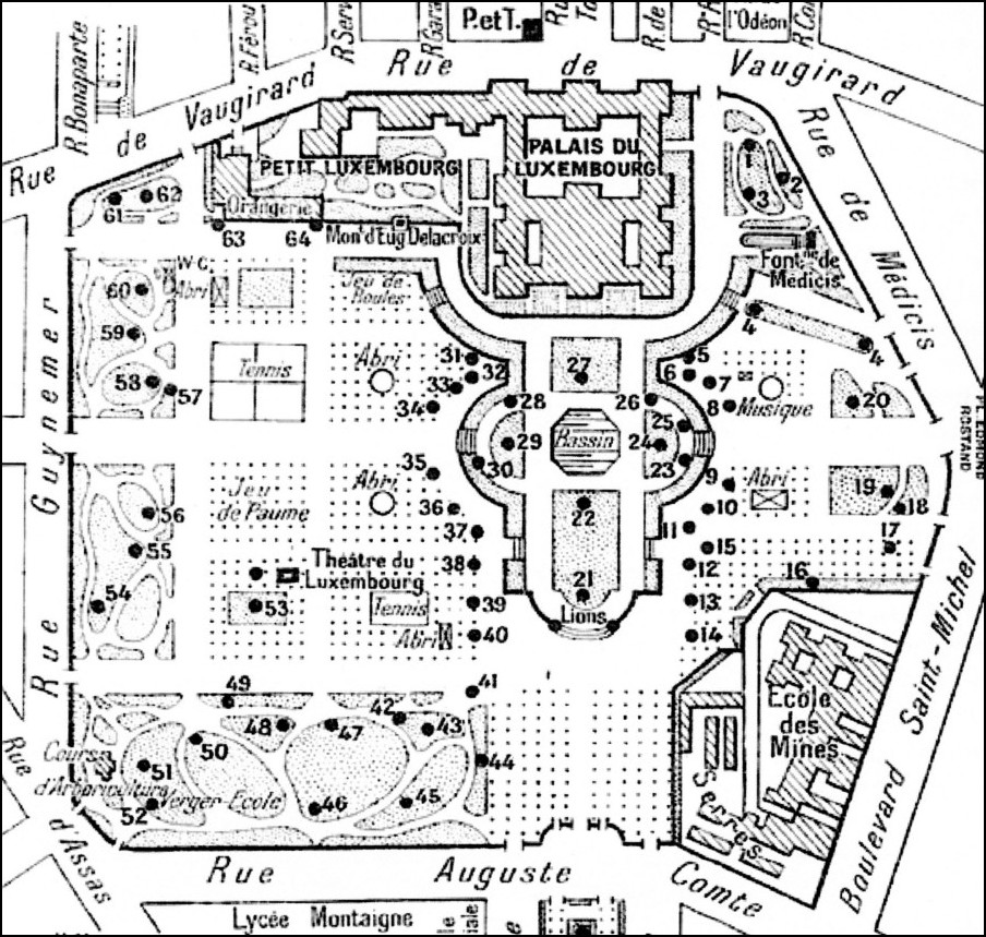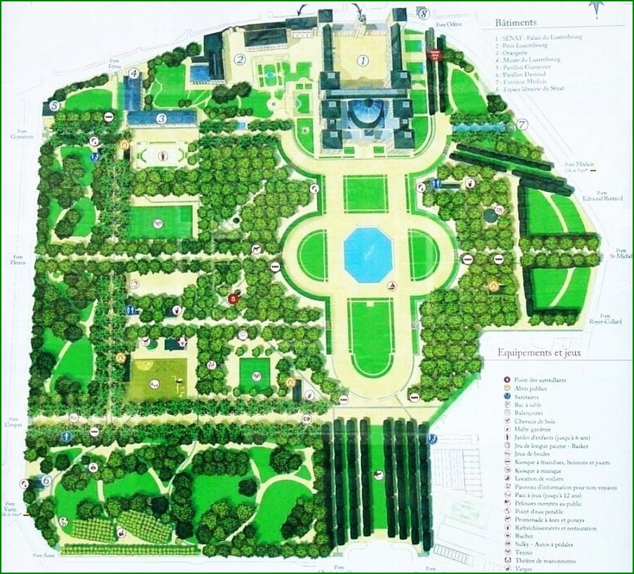 plan du jardin du Luxembourg en 1739 (plan Turgot colorisé)