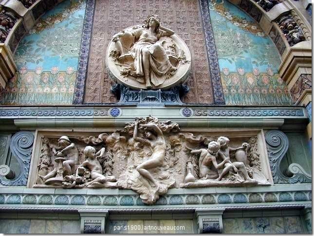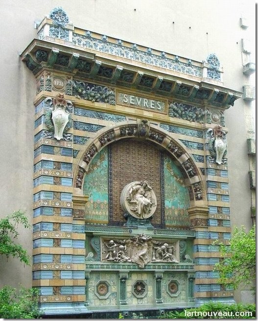 Le mur pignon qui se dresse à l'est du square est orné d'un portique monumental réalisé par l'architecte Charles Risler et le sculpteur Jules-Félix Coutan en 1900. Cette œuvre devait être l'une des travées de la façade d'un palais entièrement en céramique, qui exposait les produits de la Manufacture de Sèvres lors de l'Exposition Universelle de 1900. Décoré de motifs variés caractéristiques de l'Art nouveau, ce portique en grès émaillé est orné d'un médaillon central représentant une jeune femme. La fontaine pastorale érigée le 15 mars 1925 en pierre de Chauvigny est de Félix-Alexandre Desruelles (1865-1943) La statue de Bernard Palissy a été réalisée en 1885 par le sculpteur Louis-Ernest Barrias (1841-1905). Le potier, céramiste et savant Palissy consacrera vingt années de sa vie (à partir de 1536) à découvrir le secret des émaux