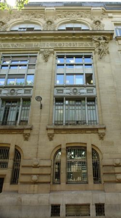 Le central téléphonique situé à l'angle de boulevard Raspail, de la rue du Cherche Midi et de la rue du Regard a été construit en 1913 à 1917 suite au percement du boulevard Raspail à l'emplacement de l’hôtel des Conseils de guerre détruit en 1913. Le central est l'œuvre de Jules Godefroy (1863-1928), architecte de l'administration des Postes et télégraphes depuis 1906, et du sculpteur Aimé Octobre (1868-1943), ornement de Daniel Barnet.