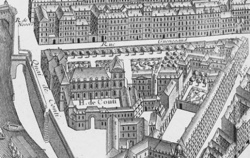 Le quai Conti est situé, le long de la Seine, entre le pont Neuf et le pont des Arts. Il doit son nom à l'Hôtel de Conti , détruit depuis, qui avait sa principale entrée sur le quai. A l'emplacement de celui-ci ont été bâti notamment l'Hôtel des Monnaies et la bibliothèque Mazarine de l'institut de France .Primitivement de trouvait la tour de Nesles construite au début du XIIIe siècle et détruite vers 1665.