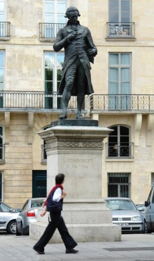 La statue de Nicolas de Condorcet placée quai Conti réalisée par le sculpteur Jacques Perrin (1847-1915) en 1894 a été détruite en 1941, mais une deuxième fonte est réalisée avec le même moule et la statue est réinstallée sur son socle en 1991.