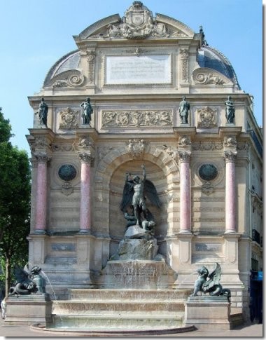 La place Saint Michel se situe en bordure de la Seine a été crée sous le second empire en 1855 suite au percement du boulevard saint Michel . Ce dernier se prolonge vers le nord par le pont Saint Michel permettant d'accéder à l'île de la Cité . La fontaine Saint Michel qui fait face à la Seine a été réalisée par l'architecte Gabriel Davioud en 1860, elle comprend un groupe en bronze sculpté par Francisque Duret (1804-1865) , inspiré du tableau de Raphaël au Louvre, représentant Saint Michel terrassant le démon.