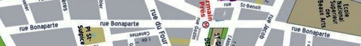 La rue Bonaparte commence quai Malaquais au bord de la Seine, passe devant l'Ecole de Beaux Arts traverse la place Saint Germain des Prés devant l'église, puis le boulevard Saint Germain ou débute la rue de Rennes . La rue longue la Mairie du 6e arrondissement qui fait face à la place St Sulpice, elle se termine rue de Vaugirard face au jardin du Luxembourg.