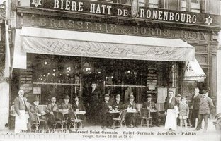 La Brasserie Lipp: 151, boulevard Saint Germain En 1880, Léonard Lipp et sa femme, d'origine alsacienne, ouvrent à cette adresse la Brasserie des Bords du Rhin, en 1920, quand Marcellin Cazes devient propriétaire et Lipp connaît alors une véritable notoriété. La décoration intérieure a été réalisée: en 1900 par le céramiste Léon Fargue, qui signe huit faïences de la première salle; en 1925, Madeline aménage une seconde salle dans la cour. Celle-ci est décorée de mosaïques (des copies des panneaux de céramique de Fargue) et de glaces légèrement inclinées. Des scènes africaines sont peintes par C. Garry sur les plafonds des deux salles. La brasserie est inscrite à l'Inventaire des Monuments historiques en 1989.