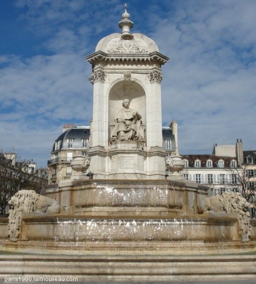 Les statues de la fontaine Bossuet, évêque de Meaux de Jean-Jacques Feuchère (1807-1852). Fénelon, archevêque de Cambrai (1843) de François Lanno (1800-1871). Massillon, évêque de Clermont de Jacques-Antoine Fauginet (1809-1847). Fléchier, évêque de Nîmes (1845) de Louis Desprez (1799-1870) Les lions, vases et armoiries sont de Jacques Auguste Fauginet.