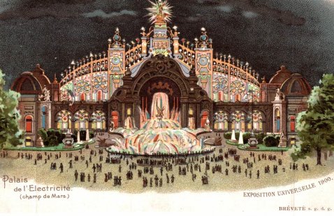 Le palais de l'Électricité a été construit pour l'Exposition Universelle de 1900 sur le Champs de Mars en face de la tour Eiffel. Il a été réalisé par l'architecte et théoricien Eugène Hénard. Le palais abritait dans son hall de fer et de verre diverses applications de l'électricité. Il servait également à alimenter les autres pavillons. Devant le palais, le gigantesque château d'eau de l'architecte Edmond Paulin faisait office de façade. De son porche jaillissent des cascades qui roulent et s'étalent, de degré en degré, jusqu'aux pelouses du Champ de Mars.
