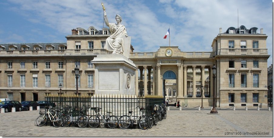 Confisqué comme bien national en 1792, il accueille, à partir de 1795, toutes les chambres basses des parlements français. Napoléon 1e fit construire, entre 1803 et 1807 par l’architecte Bernard Poyet (1742-1824) la façade qui donne sur la Seine en harmonie avec celle de la Madeleine, qui lui fait face de l’autre côté du pont de la Concorde. A l'origine, le Palais Bourbon fut construit pour la fille de Louis XIV, la duchesse de Bourbon, qui donna son nom au palais. Il devint et 1764 propriété du prince de Condé et fut agrandi par celui-ci jusqu’à parvenir à l’aspect qu’il a aujourd’hui, imposant et noble, sur la place qui porte le même nom. Le grand portique «à la grecque» qui fait pendant à l'église de la Madeleine, a été élevé en 1804 devant les bâtiments du 18e siècle de l'ancien hôtel des princes de Condé. Le fronton allégorique n'a été sculpté qu'en 1842, sous le règne de Louis-Philippe, par Jean-Pierre Cortot (1787-1843). Il représente la France entre la liberté et l'ordre public avec les génies du commerce, de l'agriculture, de la paix, de la guerre et de l'éloquence. Sur les ailes en retrait ont été plaqués deux grands bas-reliefs. A gauche, l'Instruction publique, par James Pradier (1839). A droite, Prométhée animant les arts, par François Rude (1835). Sur le perron, deux grandes figures debout en pierre: à gauche, Minerve, par Philippe Roland; à droite, Thémis, par Antoine Houdon. Au bas des marches, quatre statues de personnages assis: Sully, de Pierre Beauvallet (1750-1818), Hospital de Louis Deseine (1749-1822), d'Aguesseau, de Jean Foucou (1739-1821) et Colbert, de Jacques Edme Dumont (1761-1844) La façade à colonnes en face du pont de la Concorde a été réalisé par l'architecte Bernard Poyet à la demande de Napoléon 1e. D’abord siège du Conseil des Cinq-Cents puis Chambre des Députés, il abrite aujourd’hui l’Assemblée Nationale. L'Hôtel de Lassay L'Hôtel de Lassay situé rue de l'Université est la résidence du Président de l’Assemblée Nationale, troisième personnage de l'Etat derrière le président de la république de le Président du Sénat. Construit entre 1726 et 1730, il a été construit par les architectes Jacques Gabriel (1667-1742) et surtout Jean Aubert (1680-1741) auteur également de l'hôtel Biron (actuel Musée Rodin).